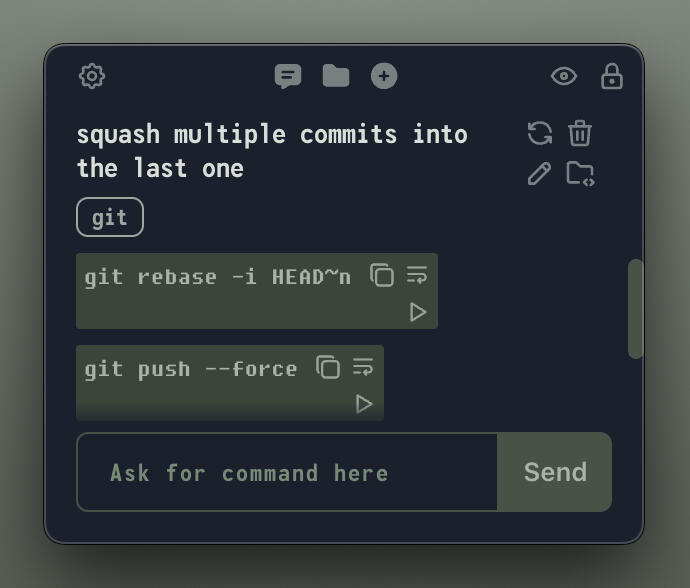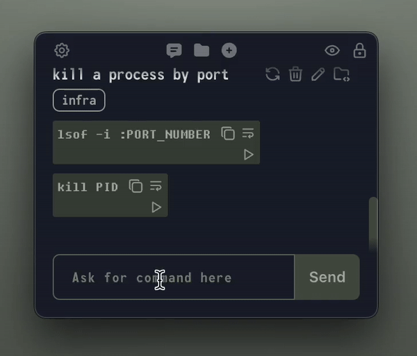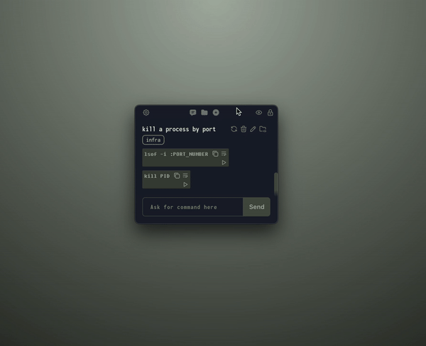 Tired of using chat-GPT to find what terminal command you need? Easily search, create, and organize your desired terminal commands with our AI-powered widget, without interrupting your workflow.